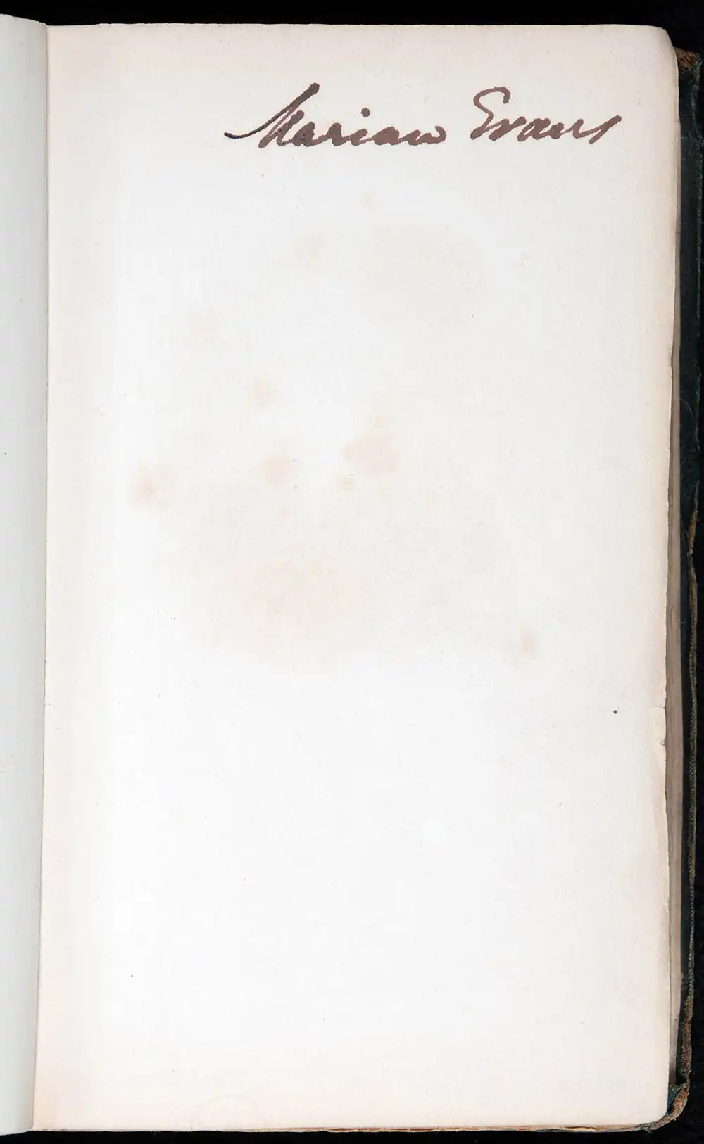 The front free endpaper and title page of this copy of Walker’s Dictionary are signed ‘Marian Evans’, who is perhaps better known by her pen-name ‘George Eliot’.