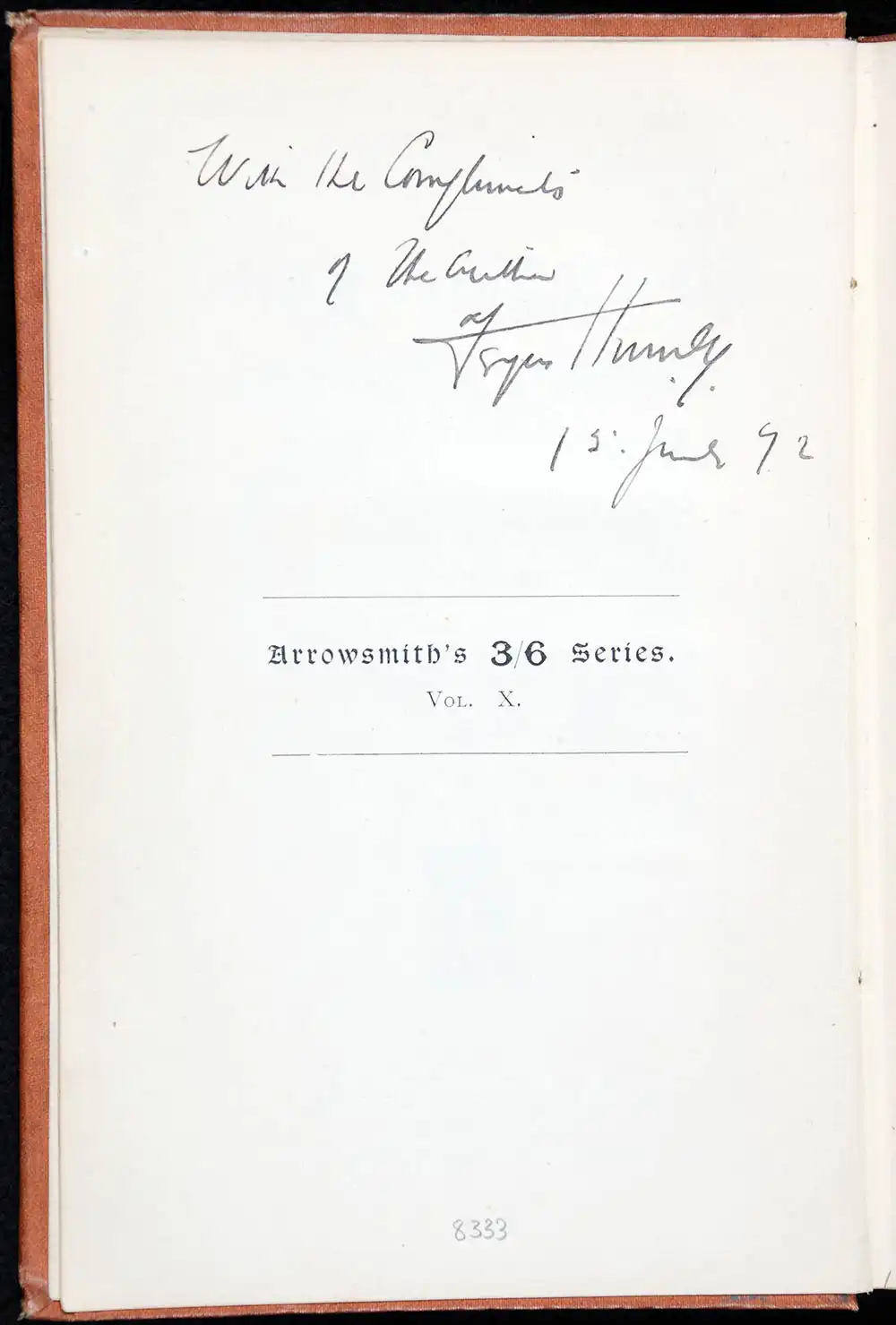 Fergus Hume. When I lived in Bohemia: papers selected from the portfolio of Peter --, Esq. Bristol: J.W. Arrowsmith, 1892.