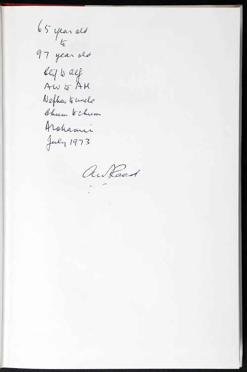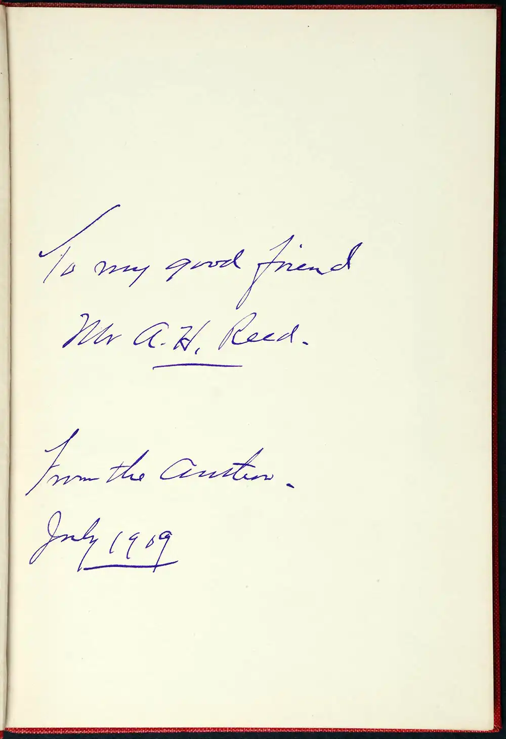 of A.W. Reed’s presentation inscriptions written in late-life to his uncle, Mr