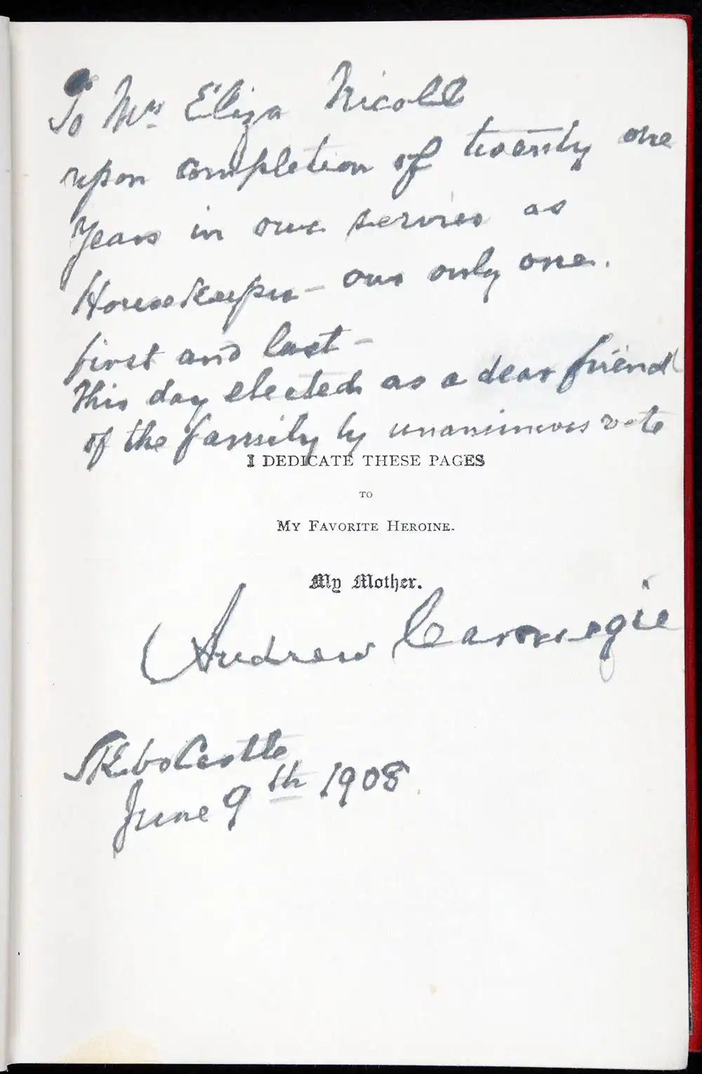 copy of a 1903 American edition contains Carnegie’s presentation inscription,