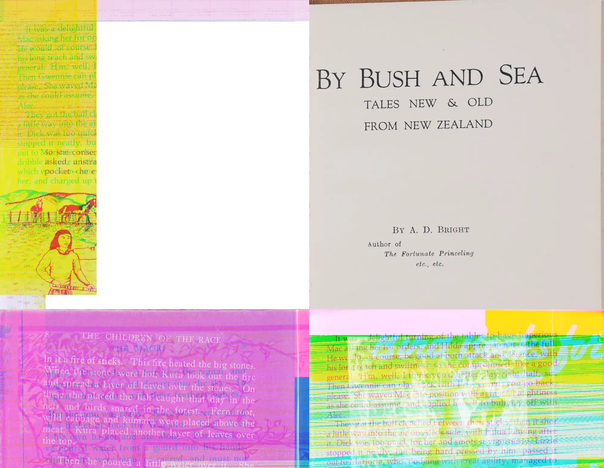 A.D. Bright. By bush and sea : tales old & new from New Zealand; illustrations by Kennaway and Frank Wright. Auckland, N.Z.: Unity Press, 1931.