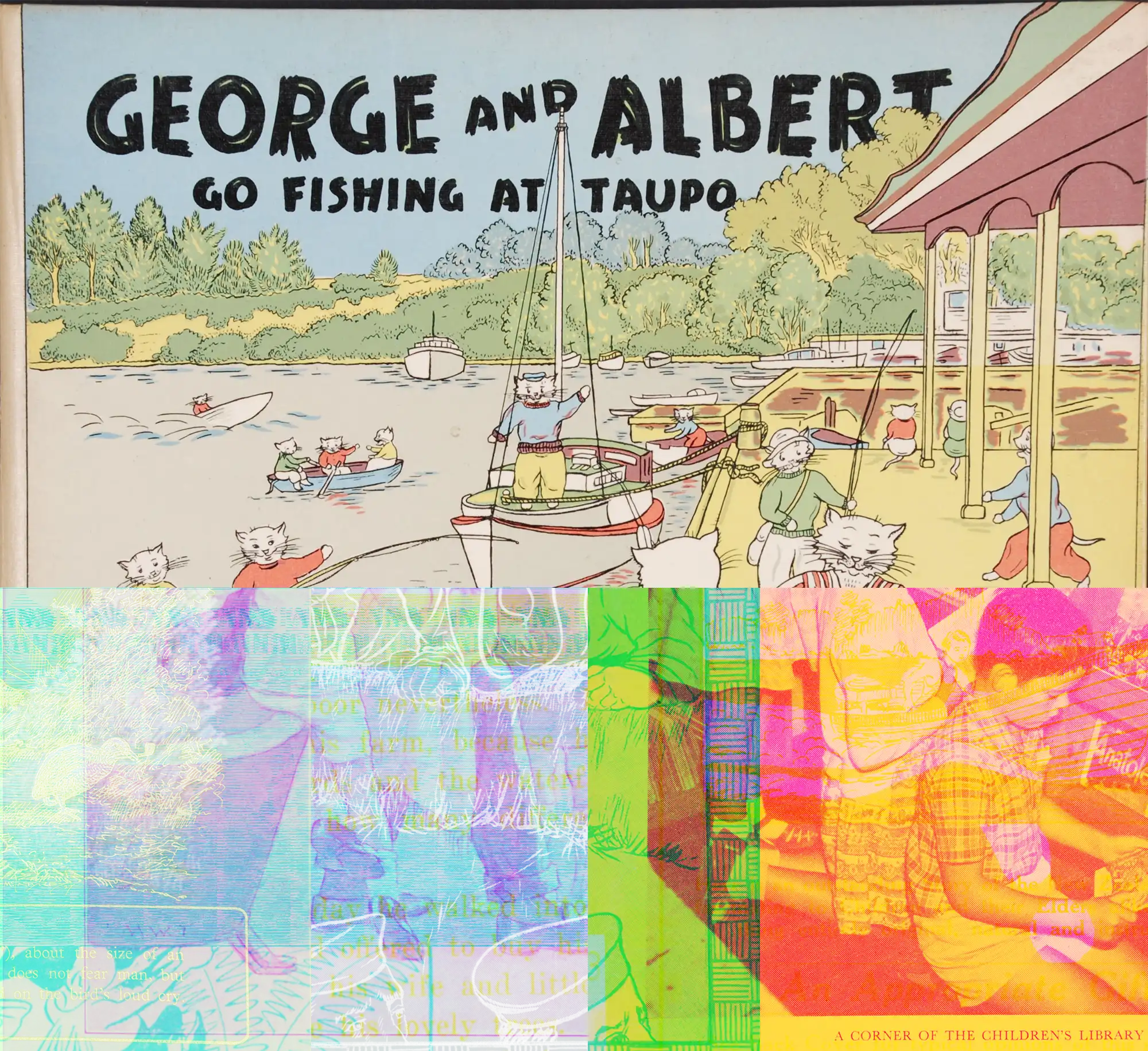 Yvonne Adams. George and Albert Snowywhiskers go fishing at Taupo. Hastings, N.Z.: Pictorial Publications Ltd., [1952].