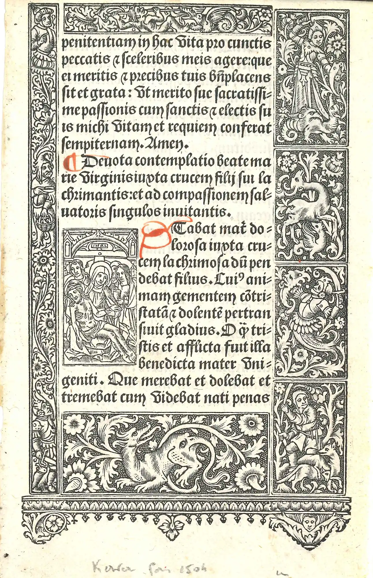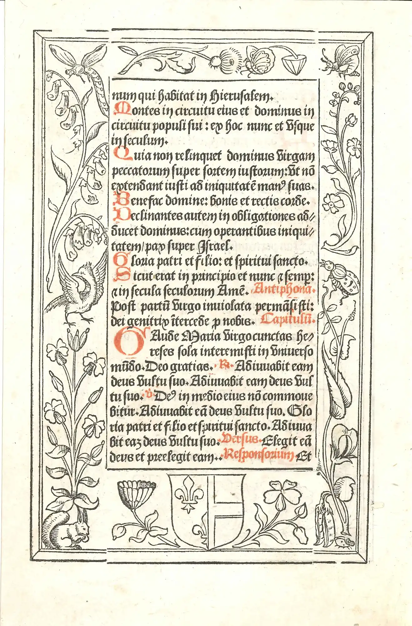 Hore virginis Marie secundum verum usum Romanum. Latin. Paris: Thielman Kerver, 1504. Single leaf.