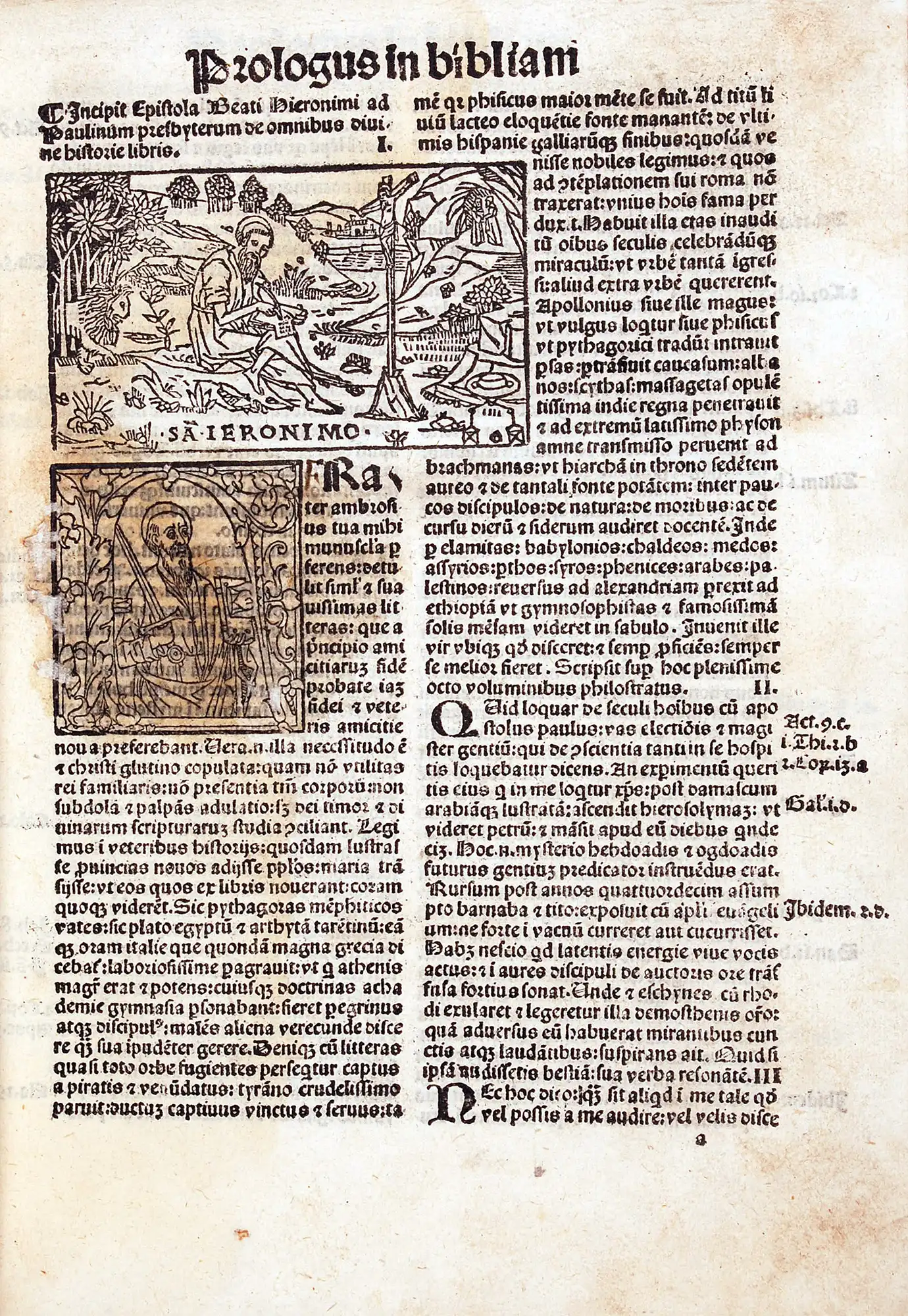 The 1498 Vulgate Bible displayed here contains the woodcuts taken from the Italian Bibles translated by Nicolo Malermi and first printed in Venice in 1490.