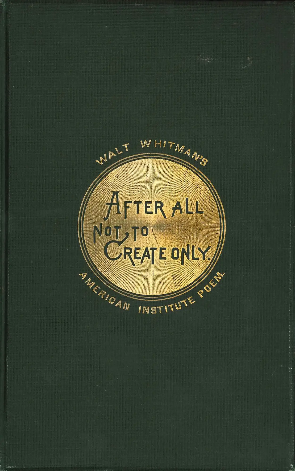 Walt Whitman. After All, Not to Create Only: Recited by Walt Whitman on Invitation of Managers, American Institute, on Opening Their 40th Annual Exhibition, New York, Noon, September 7, 1871. Boston: Roberts Brothers, 1871.