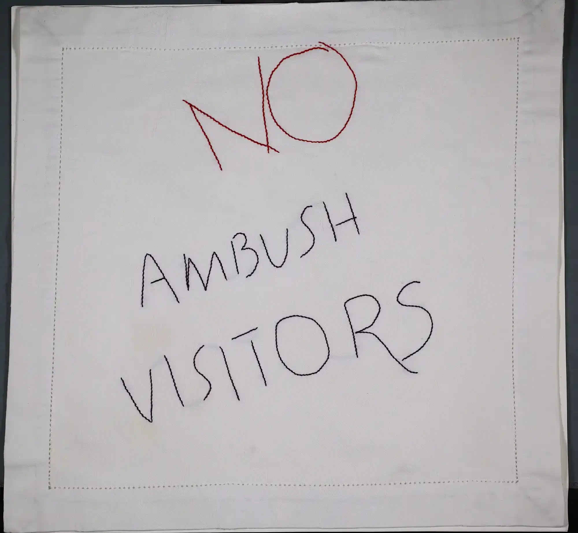 ‘No Ambush Visitors’ embroidered cloth, c .2010. Private Collection