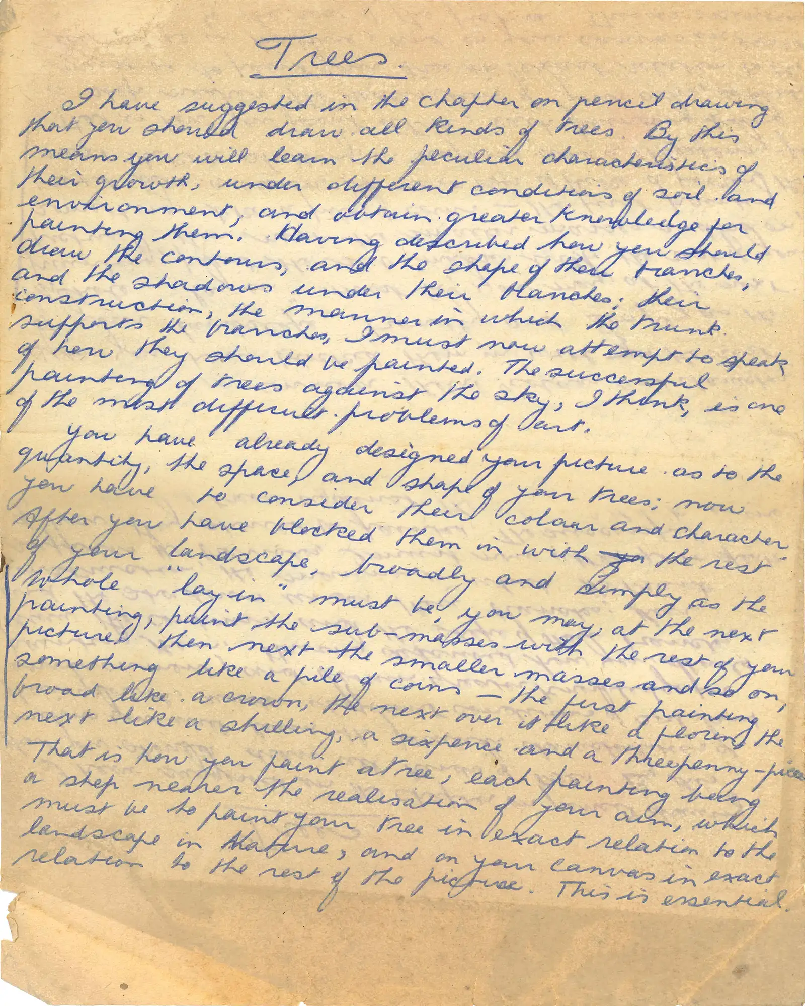 Ralph Hotere, Manuscript entitled ‘Trees’, c. 1950s. Hotere Ephemera