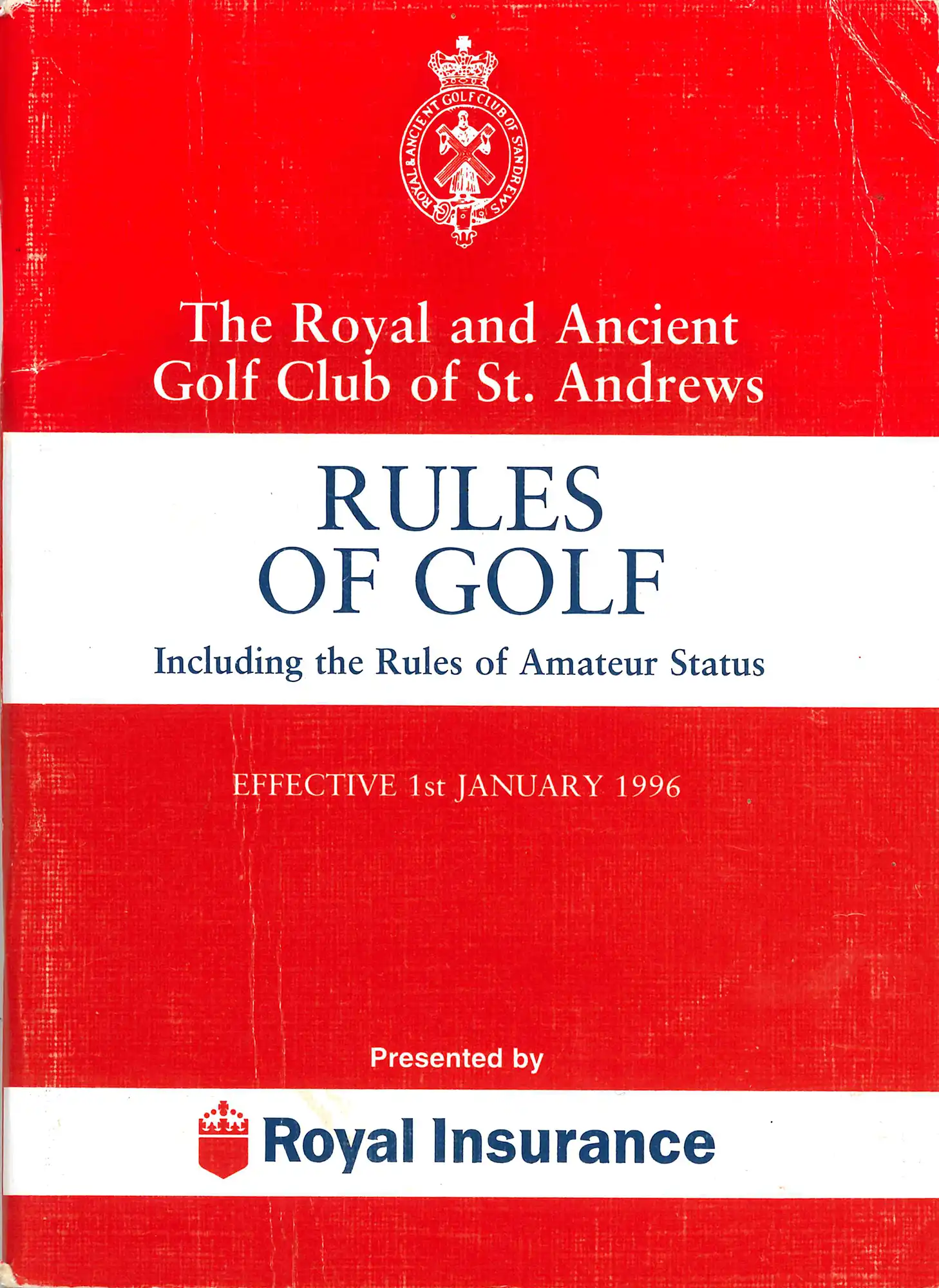 The Royal and Ancient Golf Club of St. Andrews, Rules of golf. 28th edition. St. Andrews, Scotland; The Club, 1996. SPRH 796.35202 RUL