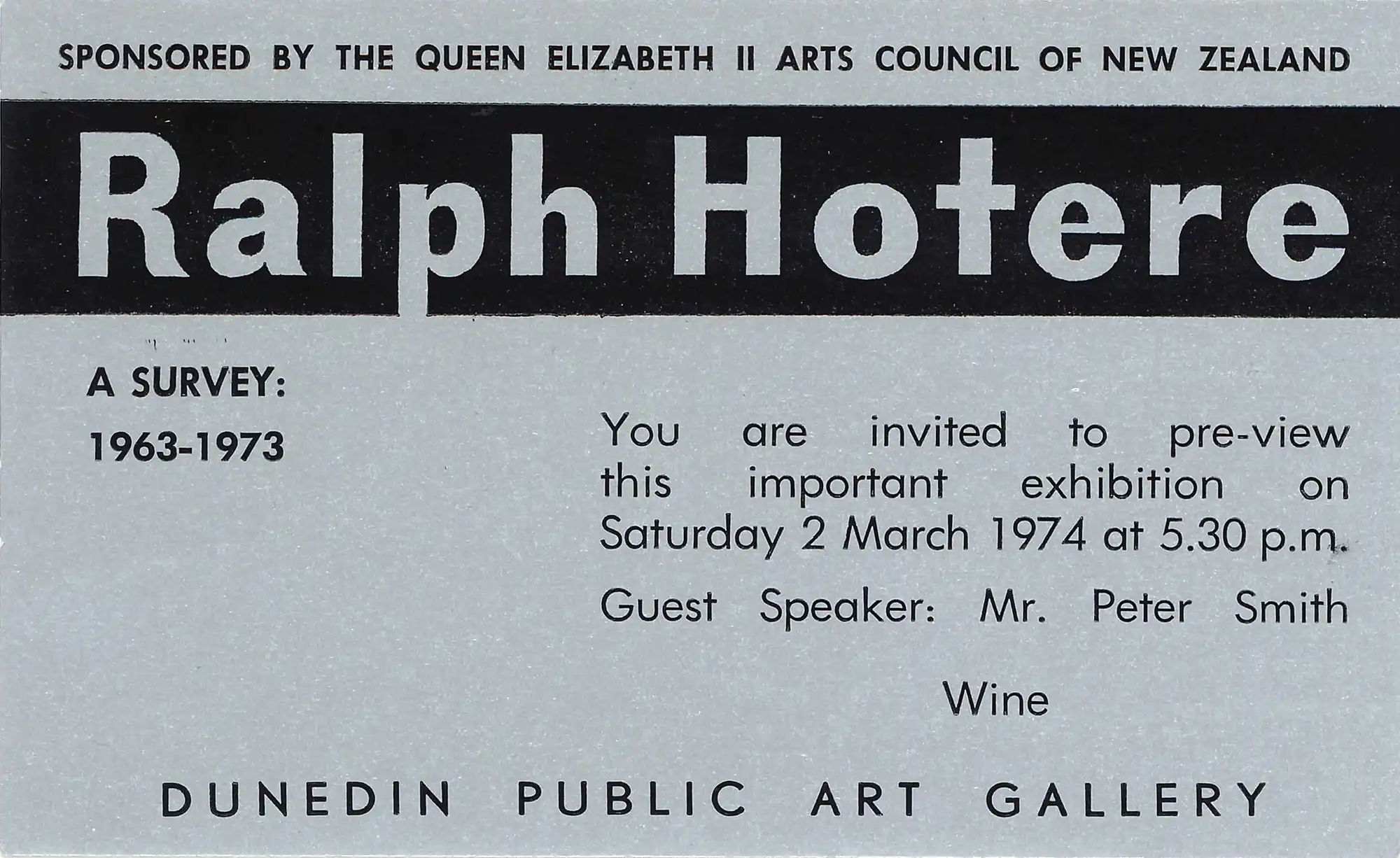 Ralph Hotere. A Survey: 1963-1973. March 1974, Dunedin Public Art Gallery, Dunedin