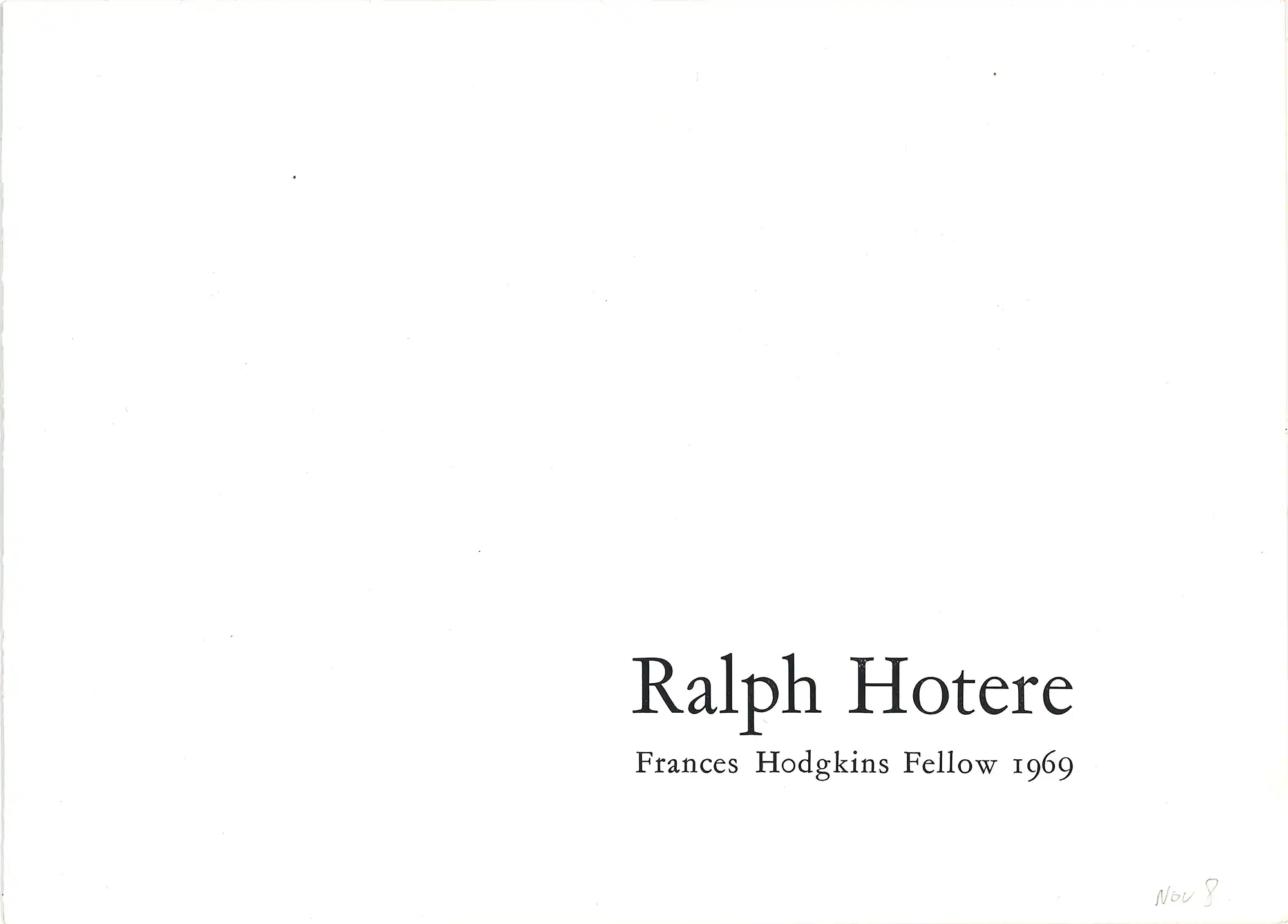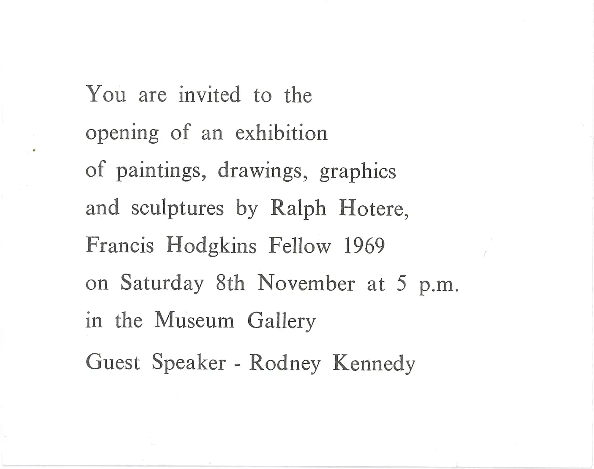 Ralph Hotere. Frances Hodgkins Fellow 1969. November 1969, Museum Gallery, Dunedin