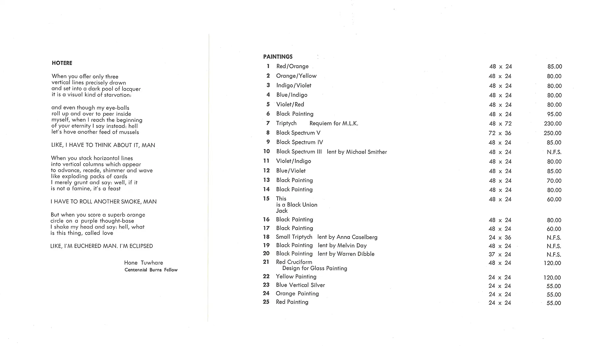 Hotere’s Hoteres. A selection of works. April 1981, Bosshard Galleries, 5 Dowling Street, Dunedin