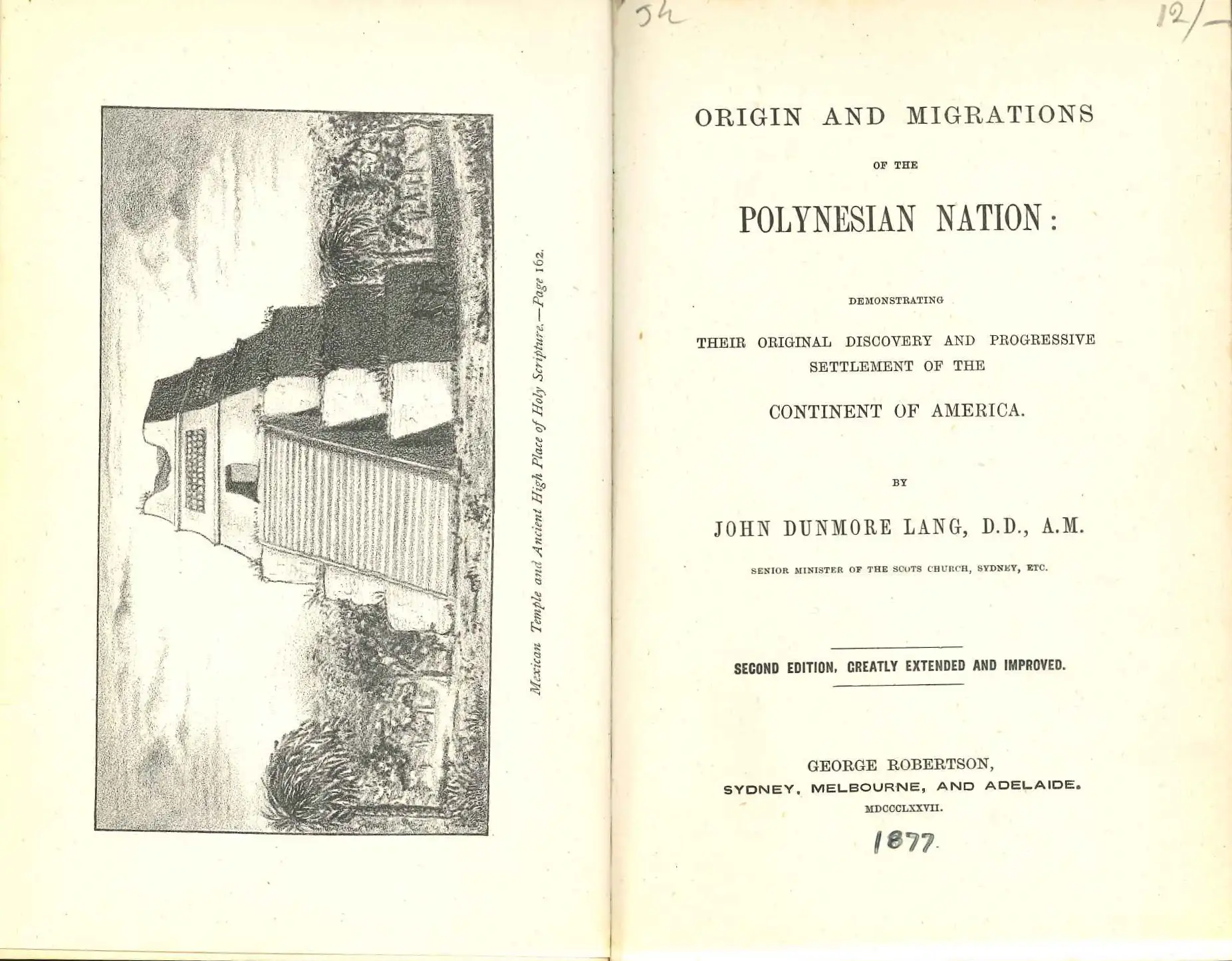 John Dunmore Lang. Origin and Migrations of the Polynesian Nation. Second edition. Sydney: G. Robertson, 1877.